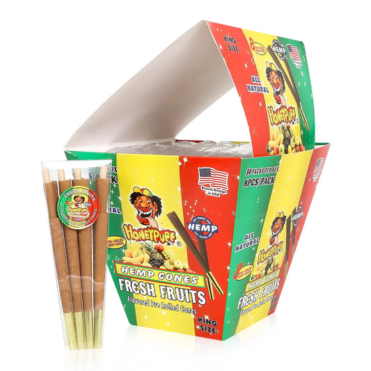 Fresh Fruit Flavored Pre Rolled Cones, King Size Rolling Cones with Tips, Slow Burning Rolling Papers, 8 Pcs / Pack 30 Packs / Box